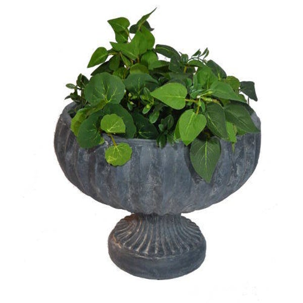 Deze stijlvolle bloempot heeft een grijze uitstraling. De bloempot staat op een voet en is leuk als aankleding van je buitentafel. Zeker wanneer je er twee naast elkaar zet. De pot is gemaakt van fiberclay en de afmeting is ca. Ø 25 x 19 cm.