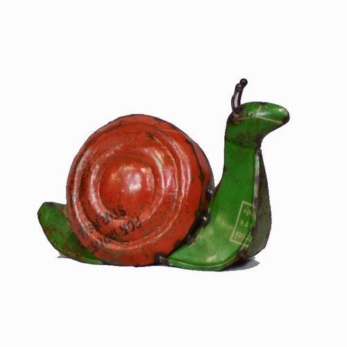 Deze leuke slak zit vol karakter en zit graag in uw tuin. Uw terras wordt levendig met deze slak. Het beeld is handgemaakt van gerecycled metaal door ambachtslieden. Een duurzame Blikvanger dus!
