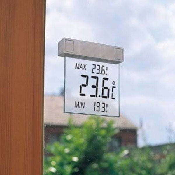 Deze vensterthermometer vision wordt met het bijgeleverde zelfklevende folie op het raam geplakt. Door zijn transparante uiterlijk kunt u altijd aflezen hoeveel graden het buiten is. Op de grote display worden ook de minimum en maximum temperaturen weergegeven (met automatische reset). De thermometer is weerbestendig.