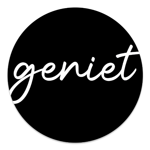 Muurcirkel zwart met tekst geniet 20cm en 30cm