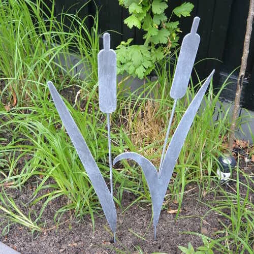 Geef uw tuin of border een extra accent met deze sfeervolle tuinsteker. De steker heeft de vorm van een lisdodde en kan gemakkelijk in de grond gezet worden. Deze tuindecoratie fleurt elke lege hoek in de tuin op. De tuinsteker is gemaakt van metaal en geschikt voor buiten.