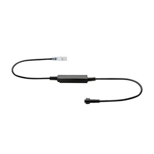 De led strip connector gebruik je om de led strip aan te sluiten op de hoofdkabel. Aan deze led strip connector zit een kabel van 1 meter en een male connector aan het andere uiteinde. Met behulp van de bijgeleverde female connector sluit je de led strip vervolgens aan.