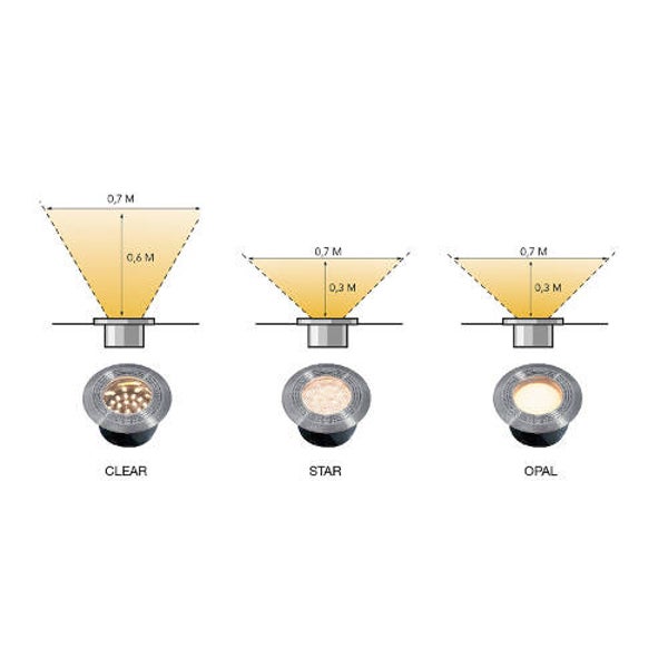 De Onyx 60 R1 is de grotere variant van de Onyx. Wil je deze tuinspots als oriëntatieverlichting gebruiken? Plaats dan meerdere decklights naast elkaar voor het optimale effect. Ook de Onyx 60 R1 leveren wij met drie verschillende glaasjes: helder, honingraat en mat.
