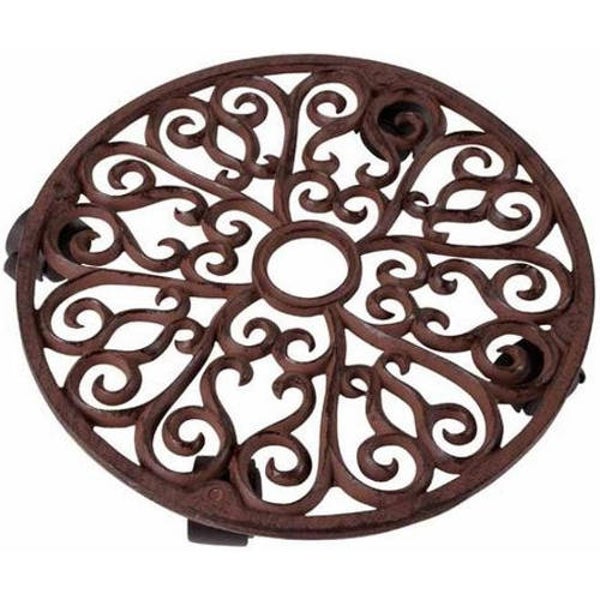 Deze klassieke ronde plantentrolley met een Victoriaans patroon en sierlijke krullen is van vier zwenkwielen en is daardoor ideaal om zware bloempotten of planten te verplaatsen zowel binnen als buiten op het terras. Deze decoratief gietijzeren trolley is met de hand gegoten volgens eeuwenoud vakmanschap en traditie.