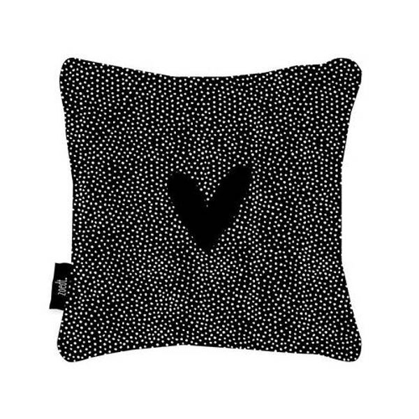 Stoere zwarte buitenkussen hart en dots patroon. Het tuinkussen heeft op de voor- en achterkant een zwart hart een mooi zwart wit dots patroon.