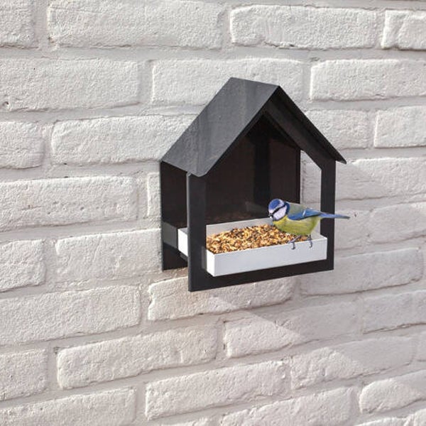 Deze tijdloze muurvoedertafel met strakke vormgeving zorgt niet alleen voor veel sfeer, maar biedt de vogels ook een ideale voederplek. Door de open structuur kunnen de vogels gemakkelijk bij het voer komen. Het dak zorgt ervoor dat het voer droog blijft. Dankzij de afgeplatte achterkant met geïntegreerde ophanggaten is deze feeder aan de muur te bevestigen.